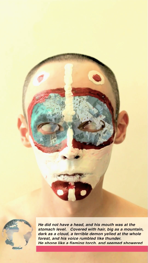 He did not have a head, and his mouth was at the stomach level. Covered with hair, big as a mountain, dark as a cloud, a terrible demon yelled at the whole forest, and his voice rumbled like thunder. He shone like a flaming torch, and seemed showered by sparks. One of his eyes with yellow lids opened on his chest, looked strange and disgusting. Beast licking their lips, revealing two rows of sharp teeth in a huge mouth. The fierce and ugly, it devoured boars, lions and birds, catching them with his huge big hands from a distance of four miles. By one movement it raking in flocks of birds and herds of deer and sent them into his mouth.