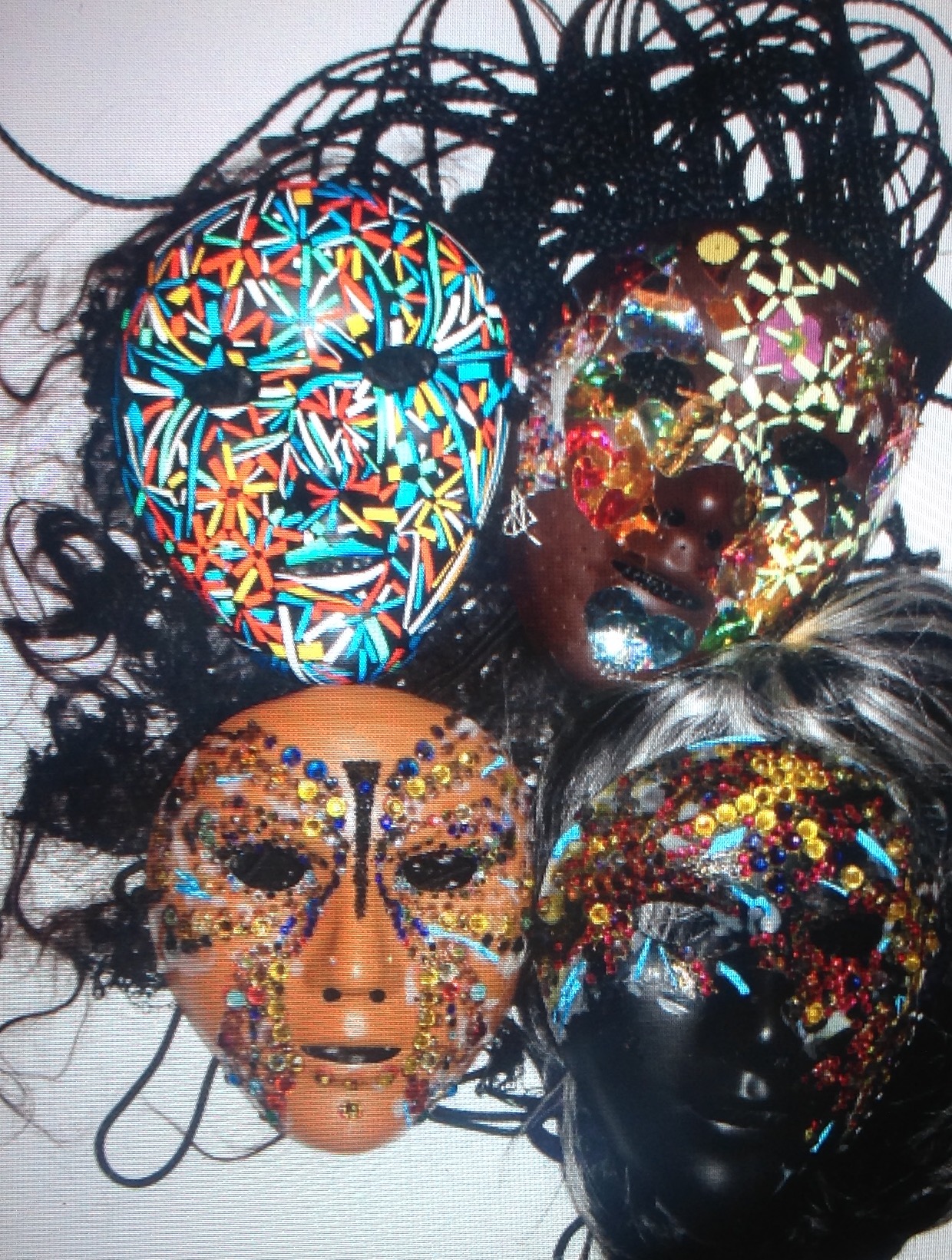 Throughout my life I have worn and created masks, any excuse or invite to a fancy dress party was a good opportunity to get creative and make a mask. There have been several masks but these were my favourites and told a narrative. The remnants of the past boxed and stored away, revisited for the mirrored masks, reflecting back on life and its journey of consciousness awakening.